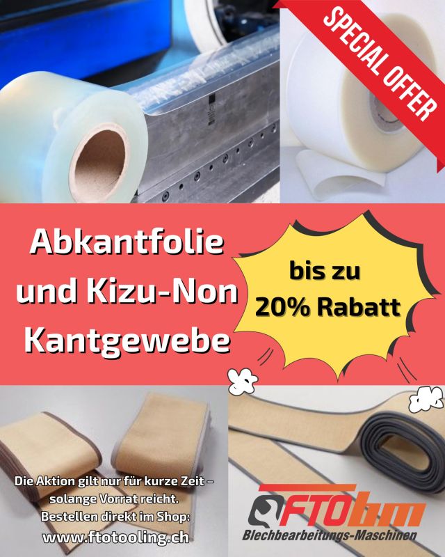 In der Blech- und Metallverarbeitung ist das Endergebnis entscheidend. Kratzer, Druckstellen und Abkantspuren sind nicht nur optische Makel, sondern mindern auch die Produktqualität. Genau hier kommen Abkantfolie und das spezielle Kantgewebe Kizu-Non ins Spiel, um die Oberfläche Ihrer Werkstücke makellos zu halten. Als Ihr Spezialist in der Schweiz bietet FTO Tooling die passenden Lösungen – und aktuell eine attraktive Rabattaktion.